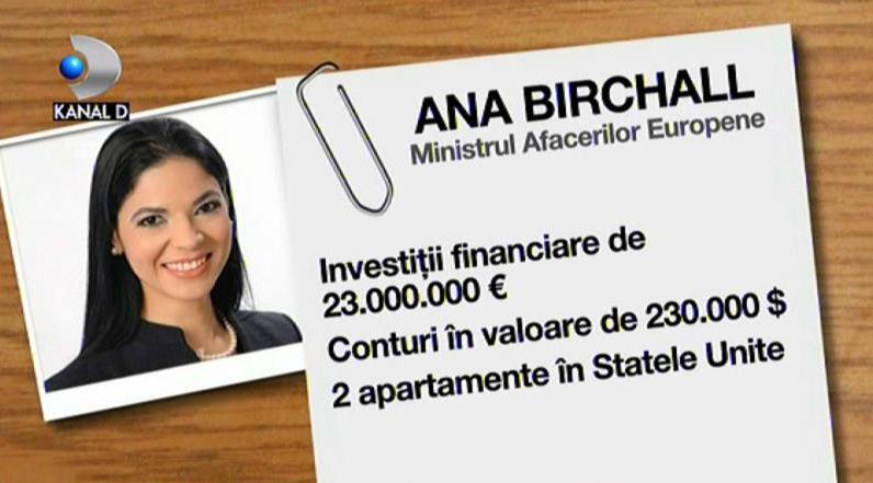 Si daca ati vazut cine sunt cei mai saraci ministri, sigur vreti sa stiti si care sunt cei mai bogati. In top conduce Ana Birchall, care ocupa fotoliul de la Afaceri Europene.