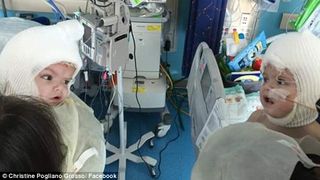 1 din 3 | Gemeni nascuti lipiti in zona capului s-au vazut pentru prima data de la nastere. Operatia de separare a durat 27 de ore