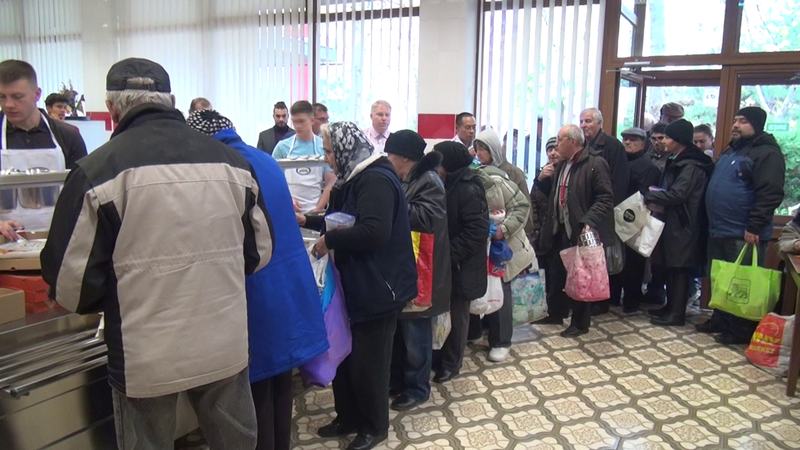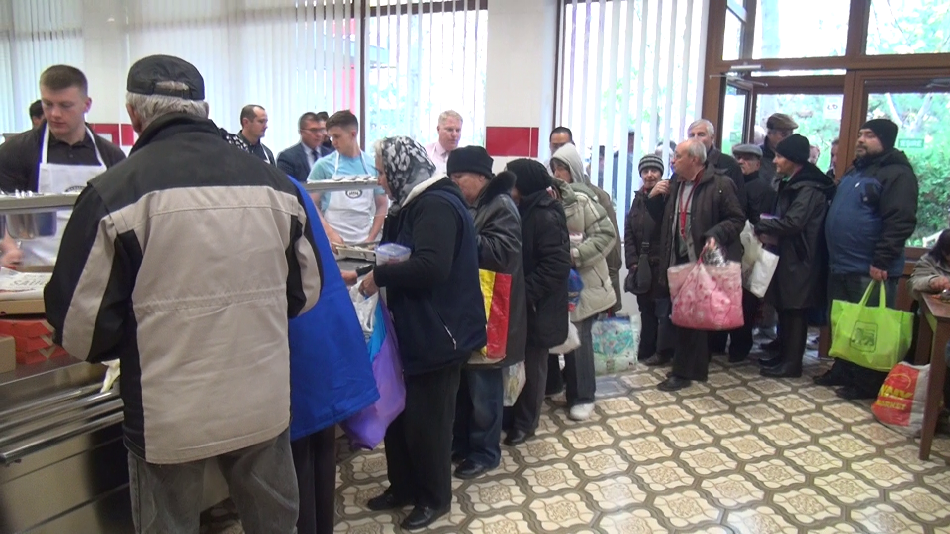 13 din 13 | Gest impresionant facut de afaceristii turci pentru nevoiasii din Bucuresti. Pensionarii sarmani au primit numeroase feluri de mancare servite de voluntari americani.