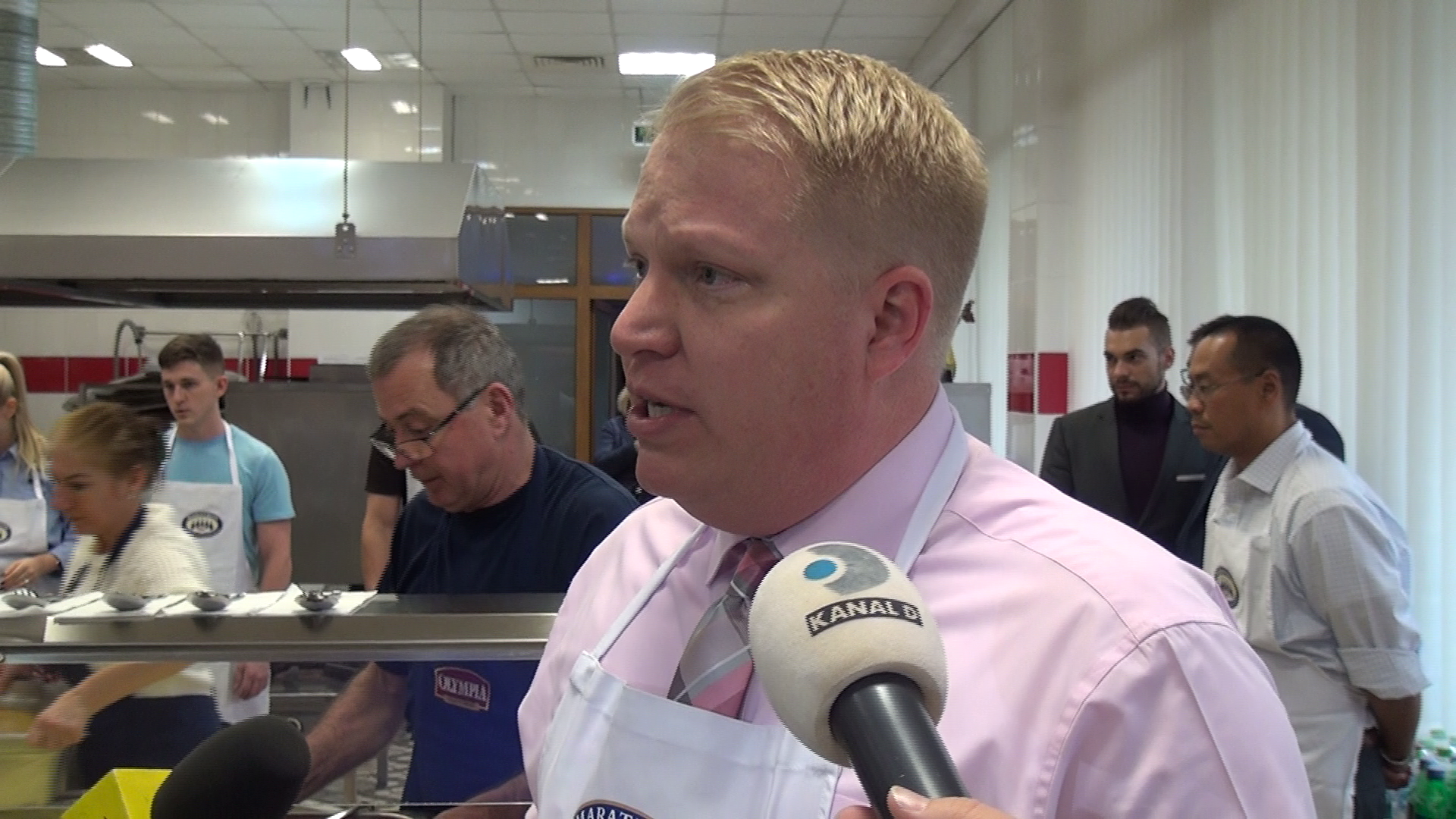 Ei bine, ieri a fost o zi speciala. In locul angajatilor obisnuiti care-i servesc pe pensionari, de partea cealalta a vitrinei s-au aflat reprezentantii Ambasadei SUA. Consilierul institutiei, alaturi de cativa puscasi marini, au muncit de la primele ore ale diminetii pentru acest eveniment.