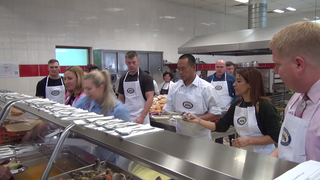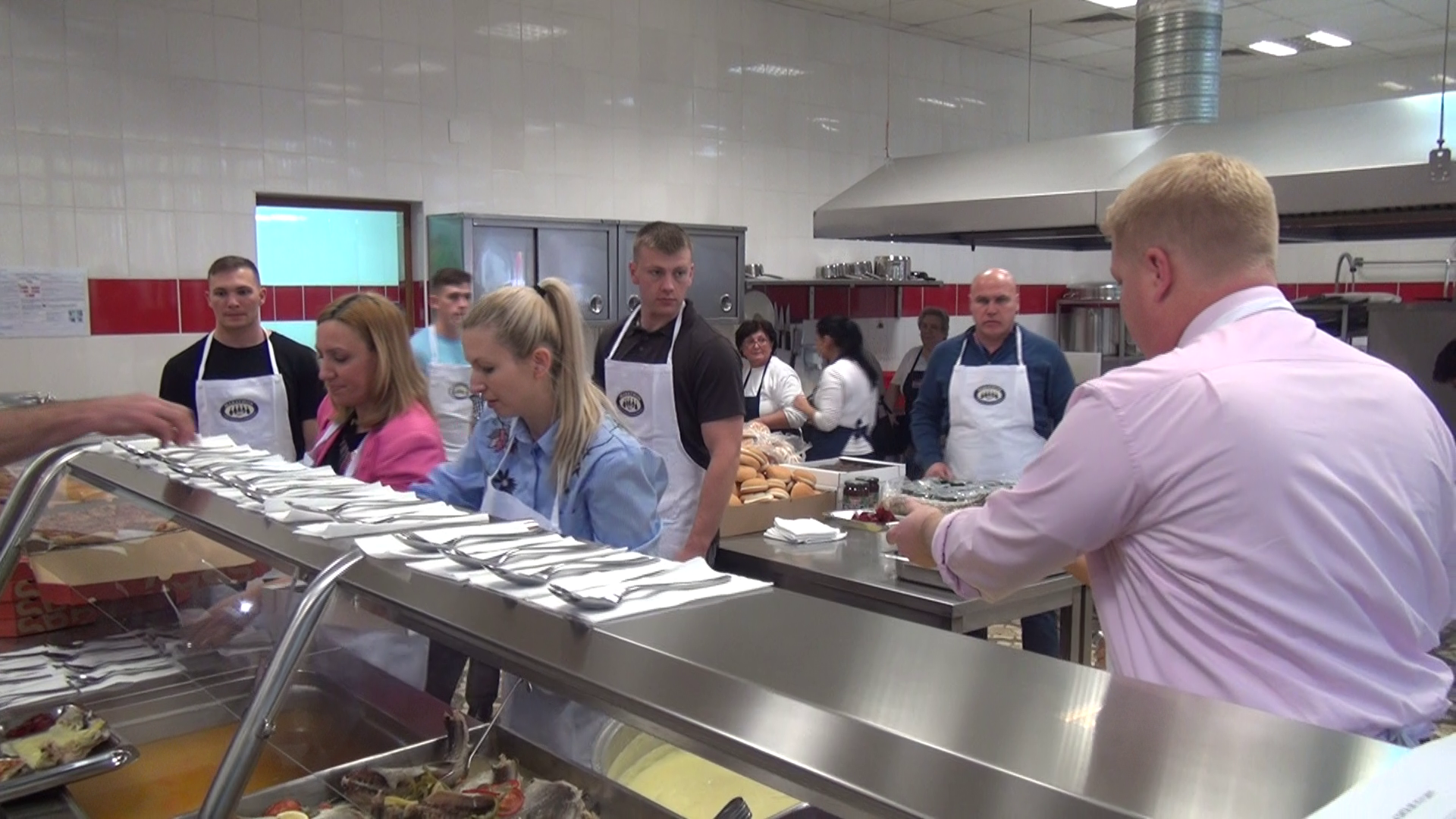 Cu sorturi si zambitori, acestia au raspuns la toate intrebarile nevoiasilor, le-au povestit despre fiecare preparat in parte si s-au asigurat ca toti cei prezenti atat inauntru cat si afara, la coada, se vor bucura de o masa copioasa.