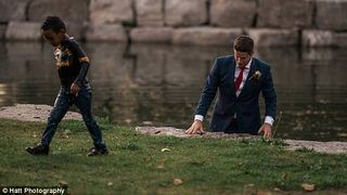 Fara sa stea o clipa pe ganduri, mirele a sarit in apa pentru a salva baietelul de la inec. ”Era cu fata la suprafata si incerca din rasputeri sa intoate. Din fericire, era mic, asa ca l-am putut scoate repede din apa ”, a declarat barbatul pentru CTV News.