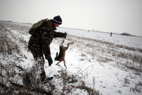 200 de iepuri a fost recolta de azi-dimineata. Unul dintre gonaci, italian, a fost impresionat de o asemenea actiune ampla. Inmultirea necontrolata a populatiei de iepuri poate deveni o problema, mai ales pentru rapita si floarea soarelui.
