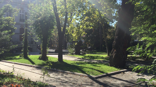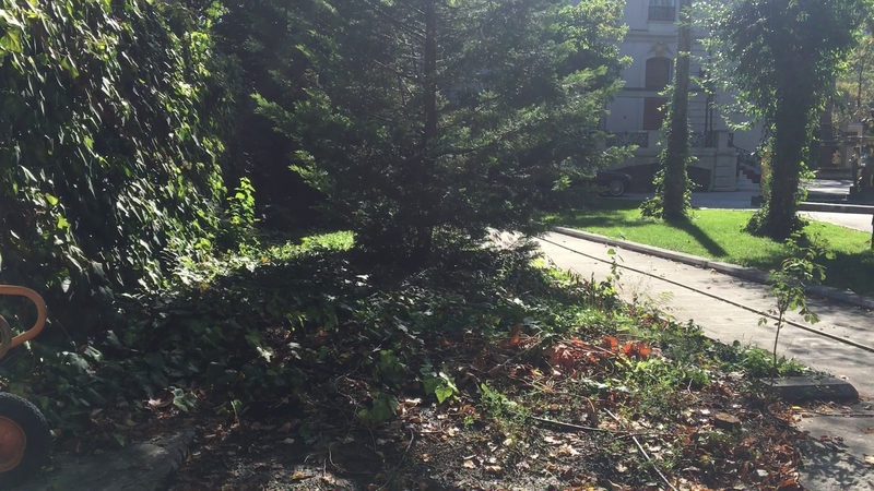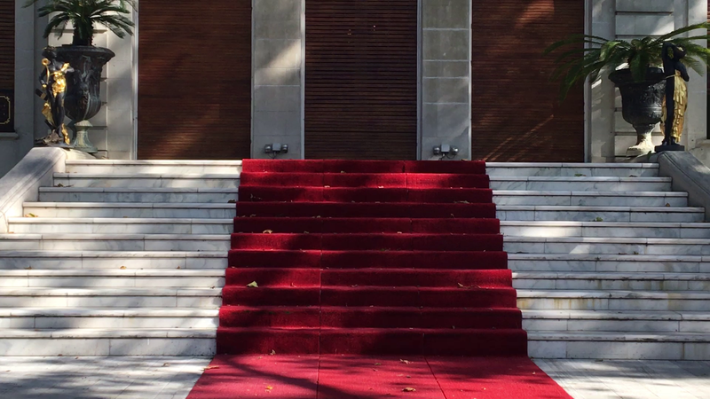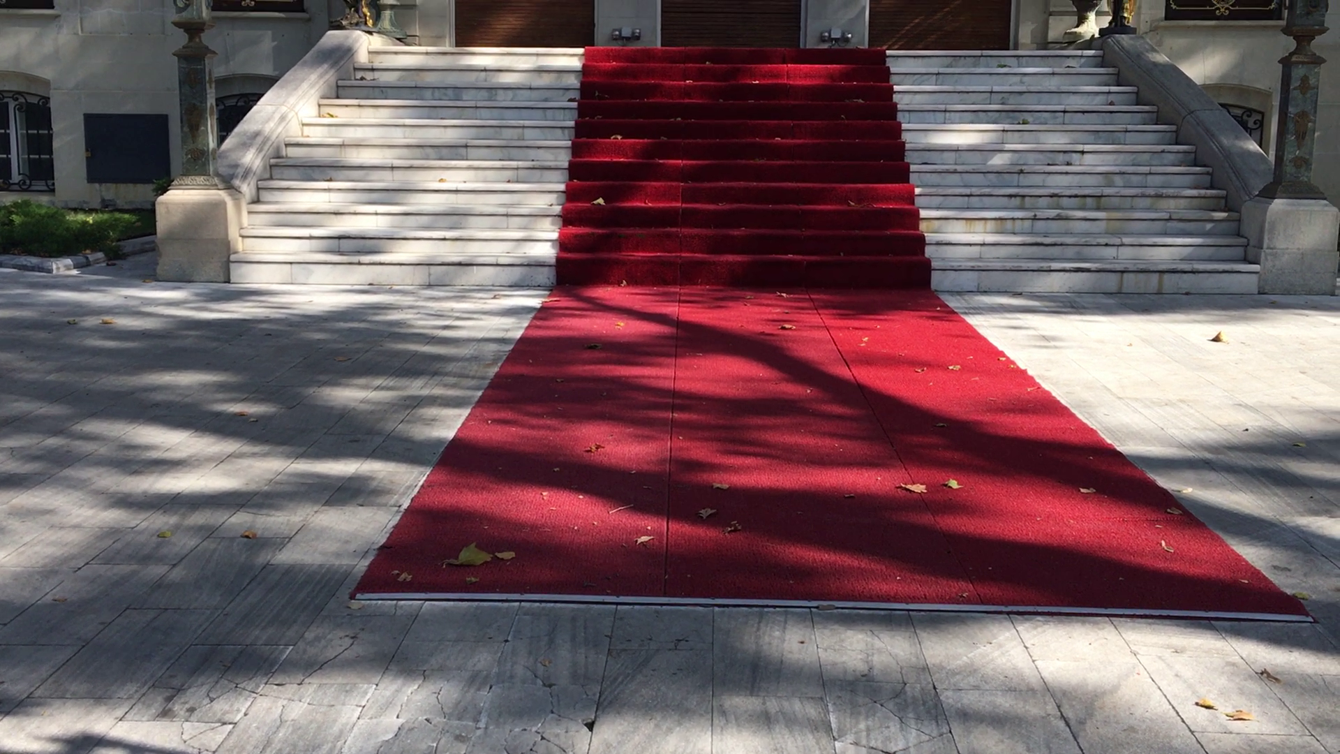 Spectacolul toamnei are o reprezentatie aparte pe proprietatea latifundiarului. Sute de frunze in nuante diferite de maro si gri contrasteaza cu palmierii verzi care flancheaza treptele vilei. Covorul rosu de pe scari este de asemenea plin cu frunze, cadrul actiunii amintind de picturile impresioniste.