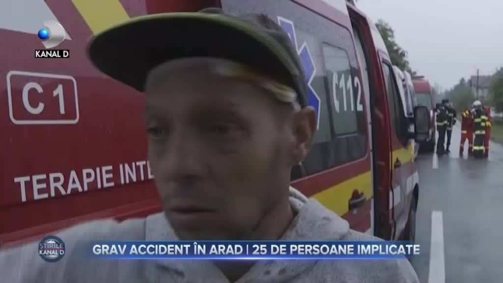 Stirea "Grav accident în Arad - 25 de persoane implicate" difuzata in cadrul Stirilor KANAL D din 12 10 2021