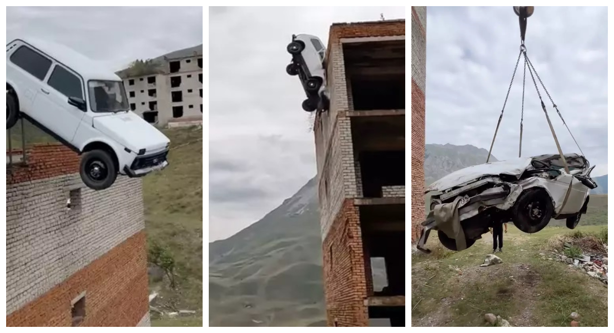 1 din 3 | VIDEO. Greșeala fatală a unui cascador rus. A încercat să sară cu o Lada de pe o clădire pe alta, dar lucrurile au mers prost