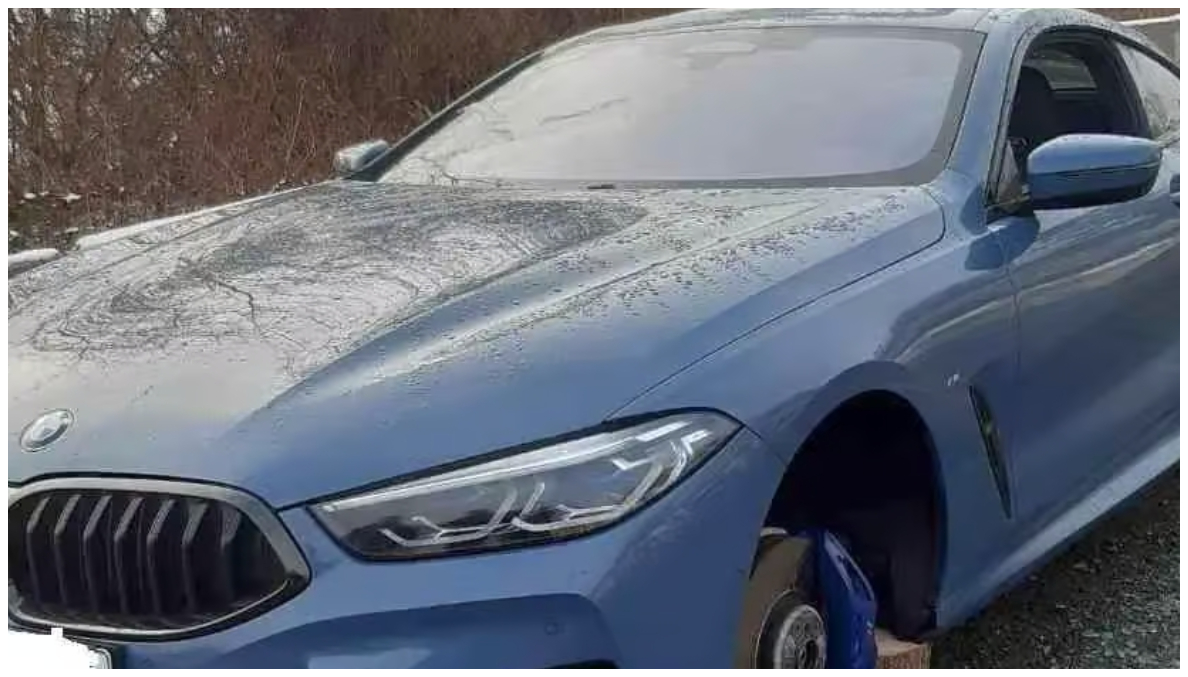 Un șofer din Alba Iulia care și-a lăsat mașina BMW parcată peste noapte pe DN 1 s-a trezit a doua zi fără toate cele 4 roți.