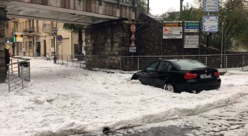 Grindina a facut prapad intr-un orasel din Italia! Zeci de soferi au ramas inzapeziti