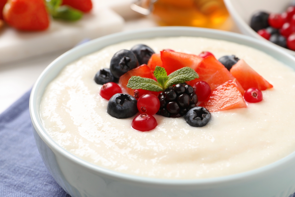 Griș cu lapte și fructe Pentru o notă de prospețime, putem adăuga fructe proaspete sau uscate peste grișul cu lapte. Fructele de pădure, merele,