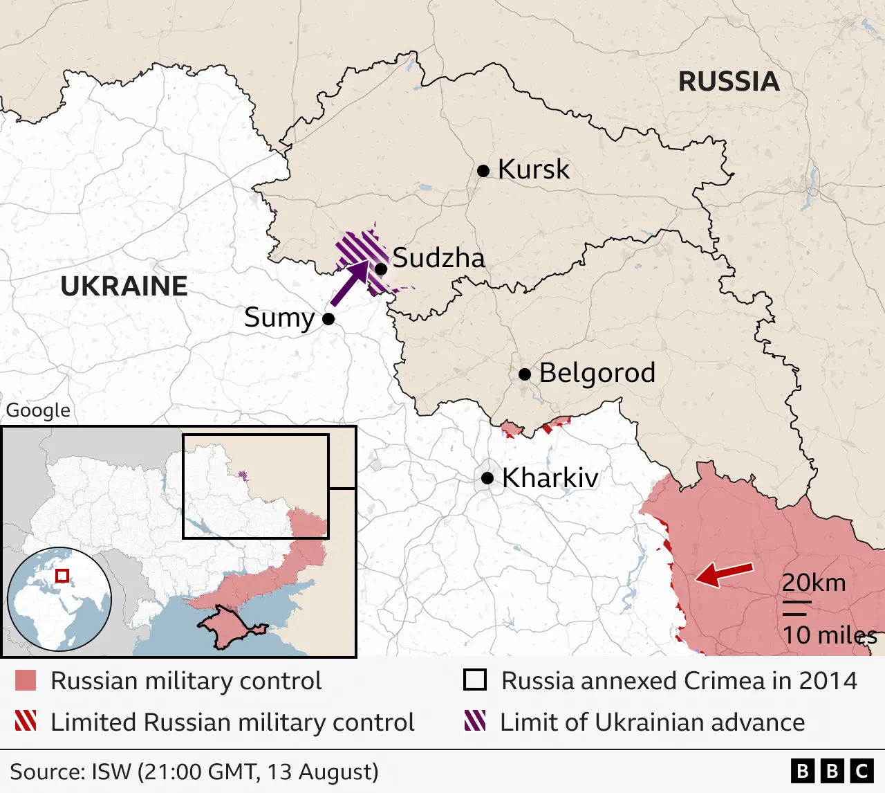 După o săptămână, comandantul superior al Ucrainei a pretins că controlează 1.000 km pătrați de teritoriu rusesc, dar analiștii citați de BBC News au sugerat că dimensiunea reală este mai mică.
