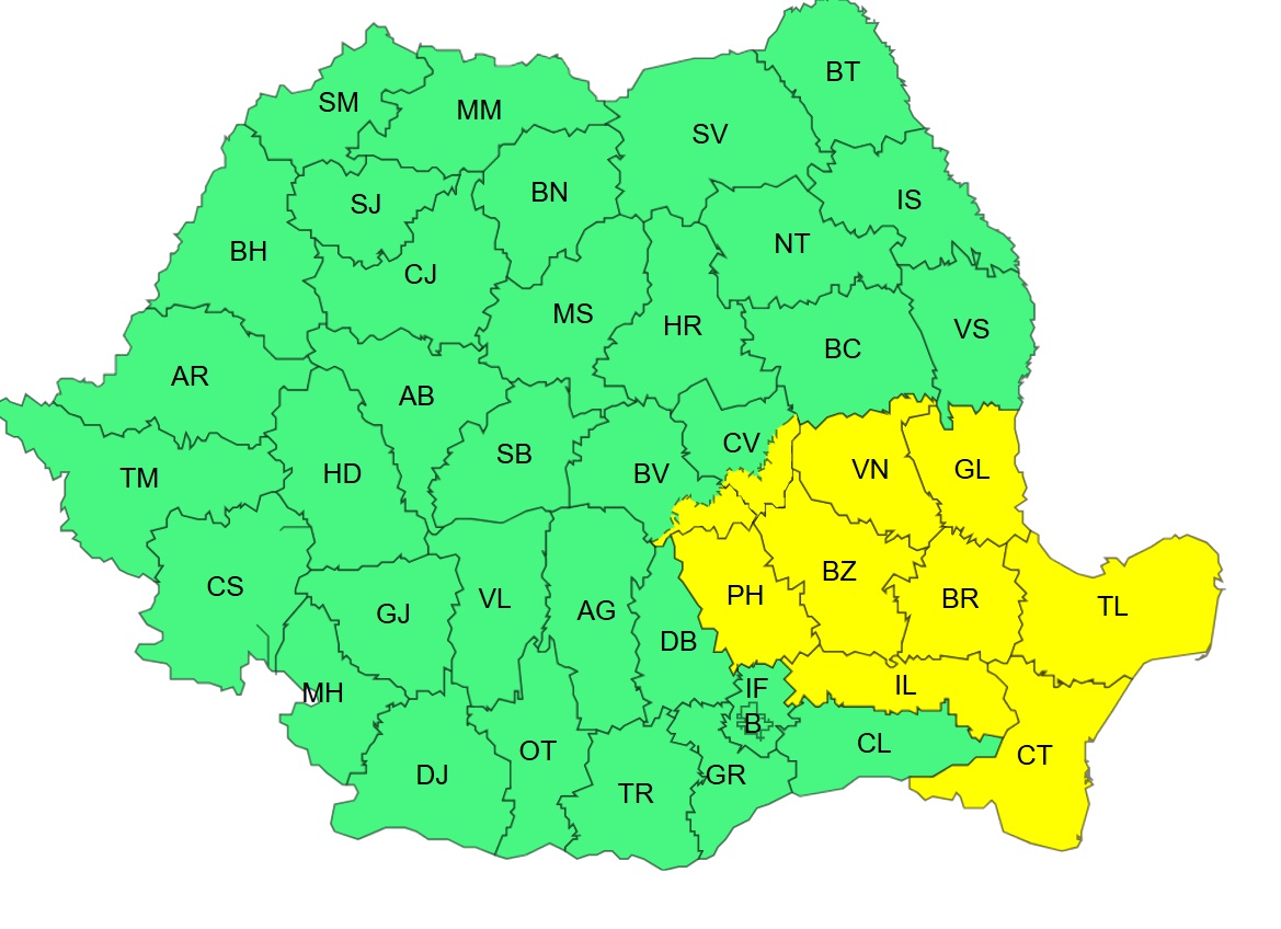 Meteorologii au emis mai multe atenționări în cursul zilei de sâmbătă. Chiar de astăzi, 9 noiembrie, de la ora 12:00, a intrat în vigoare un cod galben de intensificări ale vântului. Avertizarea este valabilă pentru Dobrogea, sudul Moldovei, nord-estul și estul Munteniei. Codul galben este în vigoare până luni, 11 noiembrie, la ora 10:00.