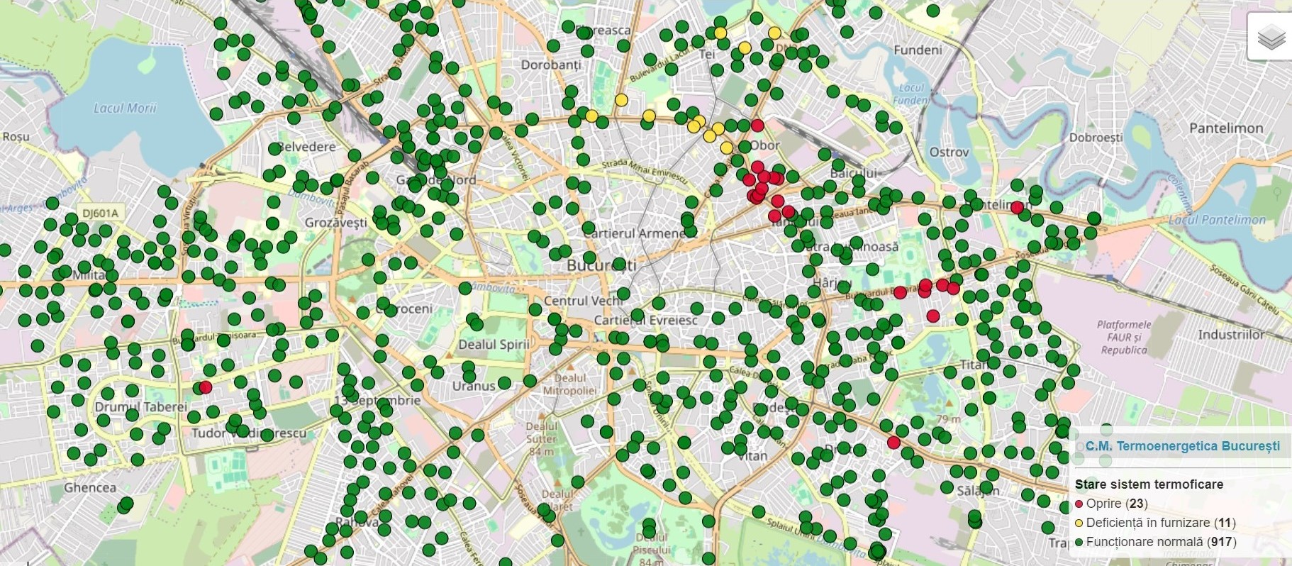 Harta zonelor afectate de avaria Termoenergetica.