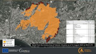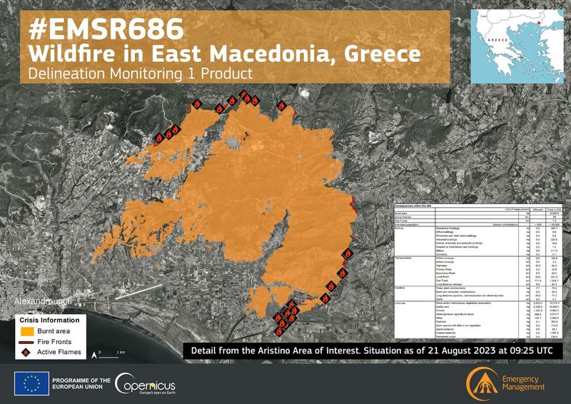 Incendii Grecia, 22 august HARTA - Scopul activării este producerea de hărți și date ale regiunii afectate, pentru a sprijini activitatea agențiilor implicate în gestionarea situațiilor de urgență și gestionarea consecințelor incendiului.
