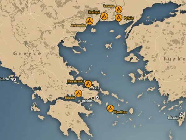 Luna trecută, un incendiu din stațiunea insula Rodos a forțat evacuarea a aproximativ 20.000 de turiști. Câteva zile mai târziu, doi piloți ai forțelor aeriene au murit când avionul lor s-a prăbușit în timp ce se scufundau jos pentru a combate un incendiu pe insula Evia. Alte trei decese legate de incendii au fost înregistrate în această vară