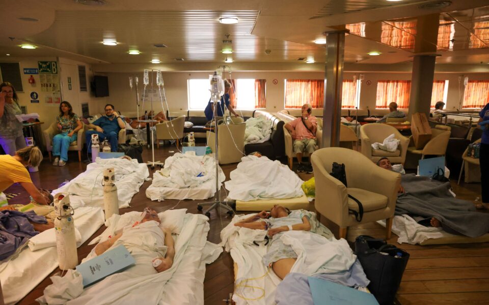 Potrivit presei din Grecia, zeci de pacienți însoțiți de medici și asistente au fost transferați, ca măsură de precauție, pe un feribot acostat în port.
