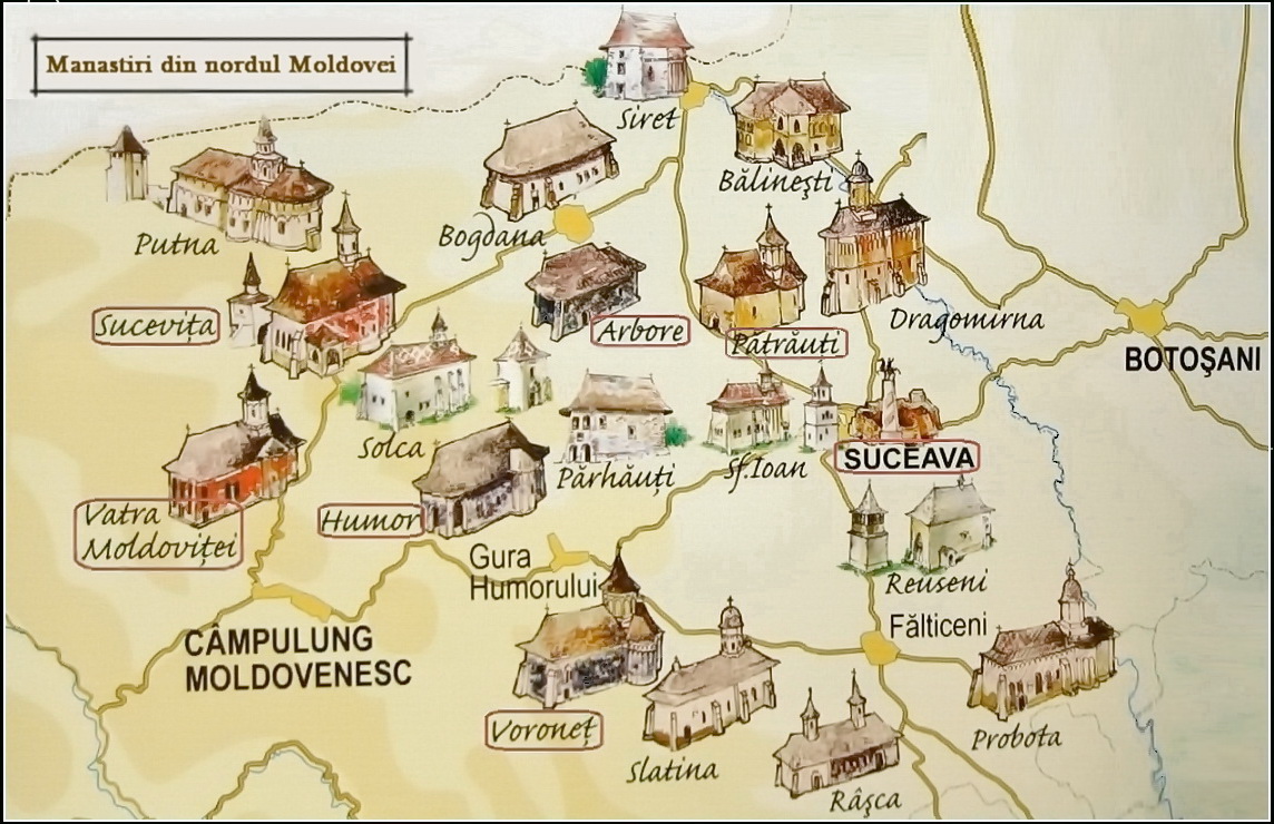 Bucovina- regiunea cunoscută pentru mănăstirile sale pictate, peisajele montane și tradițiile locale. Aici turiștii pot vizita mănăstirile Voroneț, Moldovița sau Sucevița, pot face drumeții în munții Călimani sau pot vizita orașe istorice precum Suceava sau Gura Humorului.