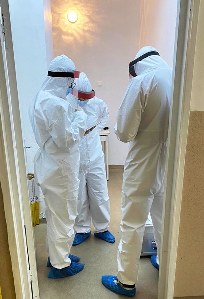 Horă în curtea Spitalului ”Victor Babeş” din Craiova- Mai multe cadre medicale, cu halate de protecţie, bonete şi mănuşi dansează