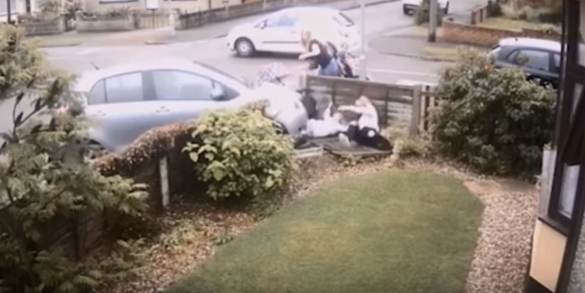 2 din 2 | Horror! O mamica si cei doi copii ai ei, unul dintre ei in carucior, loviti de o masina scapata de sub control! Autoturismul i-a aruncat intr-un gard, iar micutii au fost prinsi sub roti!