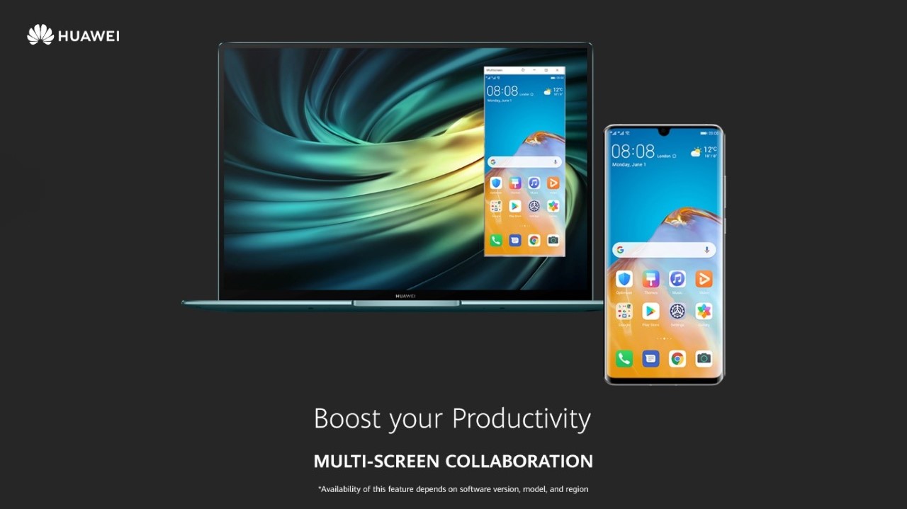 Introdusă prima dată pe sistemul de operare EMUI10, Multi-Screen Collaboration facilitează interconectarea între smartphone-urile și laptopurile HUAWEI, astfel încât ambele dispozitive pot fi utilizate pe un singur ecran. EMUI 10.1 aduce funcții îmbunătățite pentru această aplicație, precum preluarea apelurilor audio sau video pe laptop, folosirea aplicațiilor de pe laptop pentru a deschide fișiere și hyperlink-uri pe smartphone sau chiar folosirea conectivității celulare a telefonului pe computer, printr-o singură atingere. Această colaborare între ecrane sporește productivitatea și eficiența utilizatorilor, în special în ceea ce privește activitatea profesională.