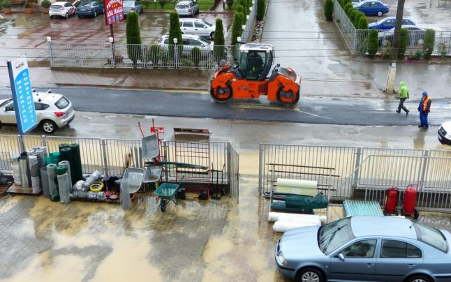 Desi in zona este cod portocaliu de inundatii, muncitorii au iesit pe o strada acoperita de apa si au inceput lucrarile de asfaltare. Imaginile au fost facute publice de Vasile Alba, pe contul sau de socializare.