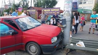 Sapte persoane care se aflau intr-o statie de autobuz de langa un centru comercial din Iasi au fost lovite, dupa ce o soferita incepatoare a pierdut controlul volanului si a intrat in viteza cu masina pe trotuar, izbind un stalp si doua banci din statia de autobuz. ##VIDEO11048##