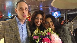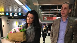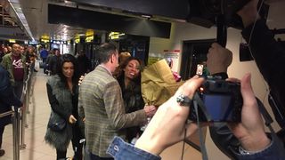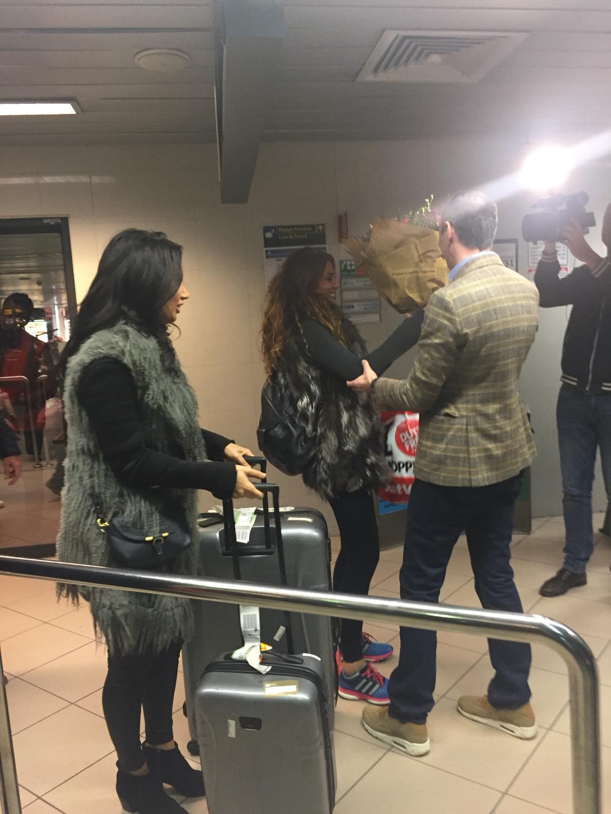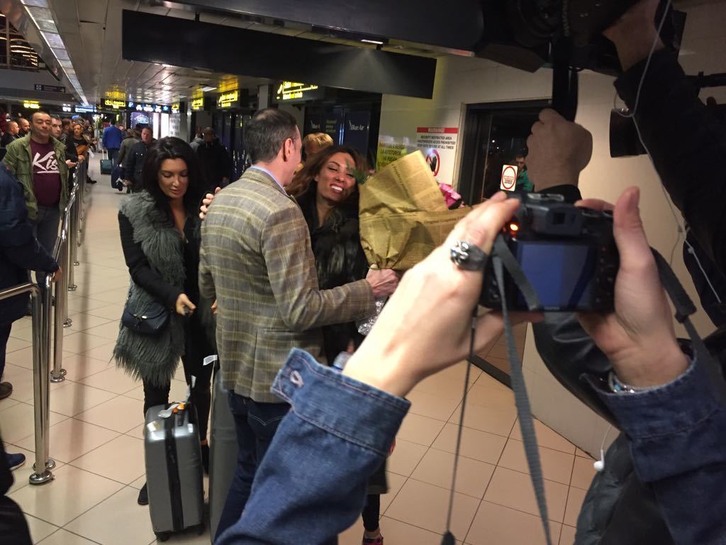 Indragita artista s-a intors, in noaptea de joi, in Romania, la aeroport fiind asteptata de sora sa, Paula, si de managerul si prietenul de familie, Bogdan Iacob. Cei doi au fost numai un zambet cand au zarit-o pe Cream si au imbratisat-o cu mult drag. La revederea celor dragi, Claudia le-a sarit in brate, vesela, atragand privirile celor aflati in aeroport.