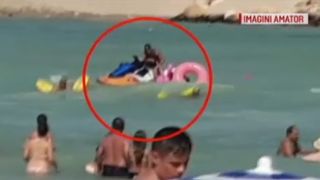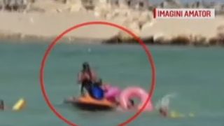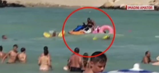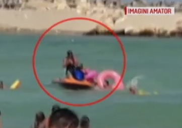 Un tată și o fiică au fost la un pas să-și piardă viața în apele tulburi ale Mării Negre, la Eforie, după ce s-au avântat în larg pe un colac și au fost trași de curenți. Un salvamar a venit pe skyjet și i-a salvat în ultima clipă. În nebunia generală, nemulţumit că e oprit să se avânte în larg, un bărbat a lovit un salvamar.