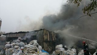 2 din 4 | Ilfov: Incendiu la o hală de pe Şoseaua Ştefăneşti, cu risc de extindere la o altă hală. Patru persoane sunt rănite