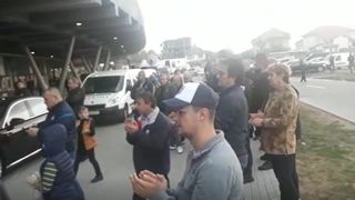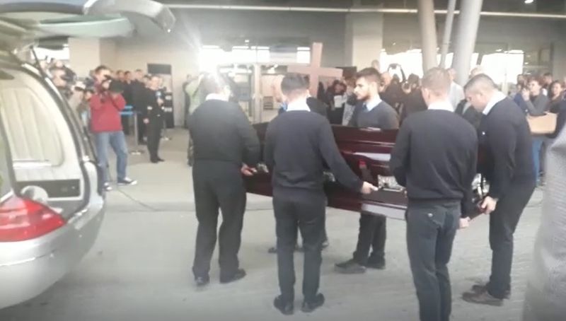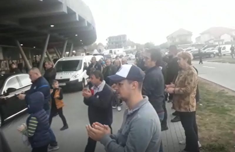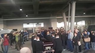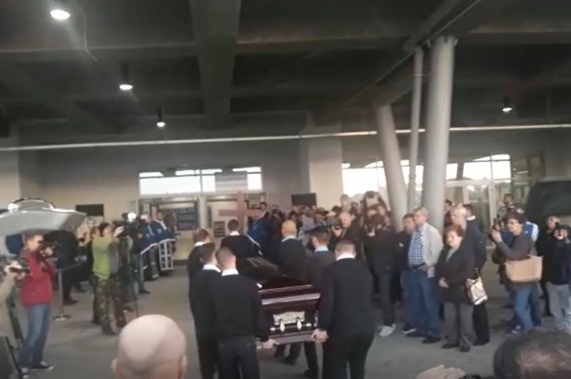 Sute de oameni s-au adunat la stadion şi au început să apluade atunci când trupul neînsufleţit ar marelui fotbalist a fost scos din maşină.