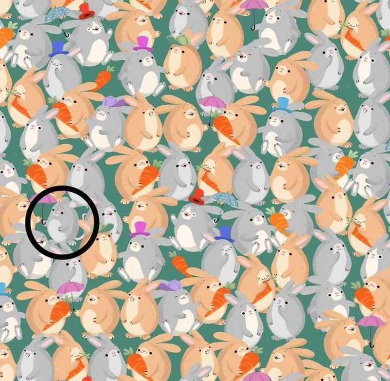 În această iluzie optică, puteți vedea un grup de iepuri de diferite culori. Totuși, undeva printre iepuri, se ascunde un șoarece. Puzzle-ul provoacă spectatorii să găsească animalul ascuns.