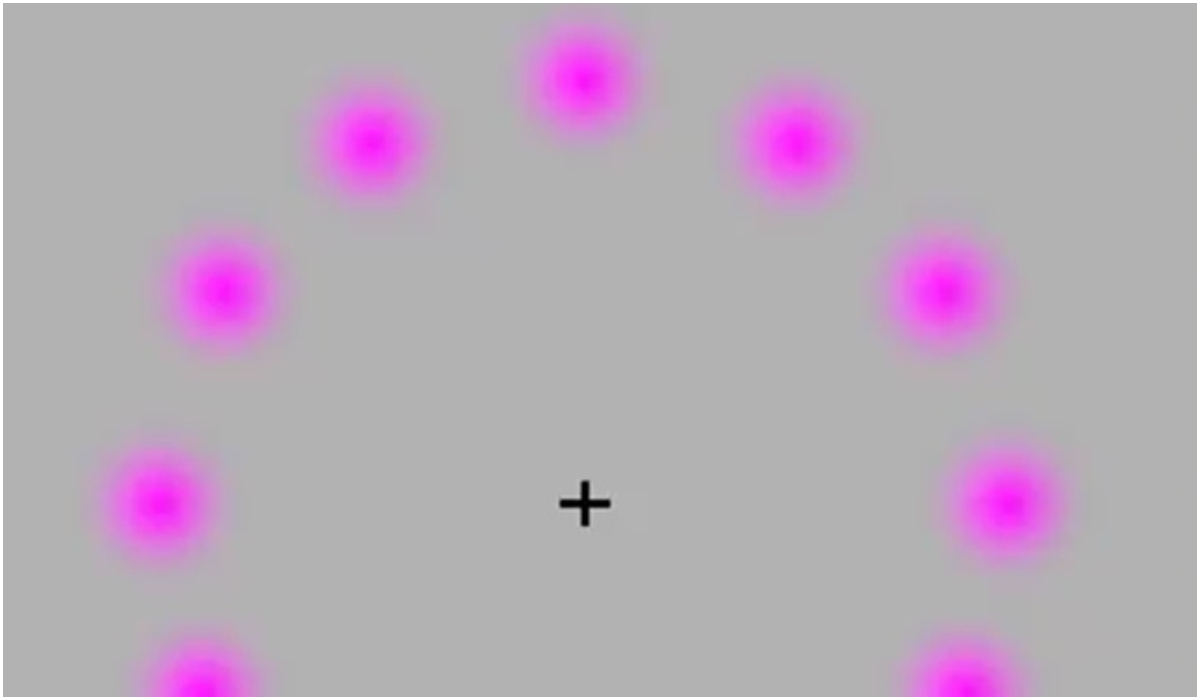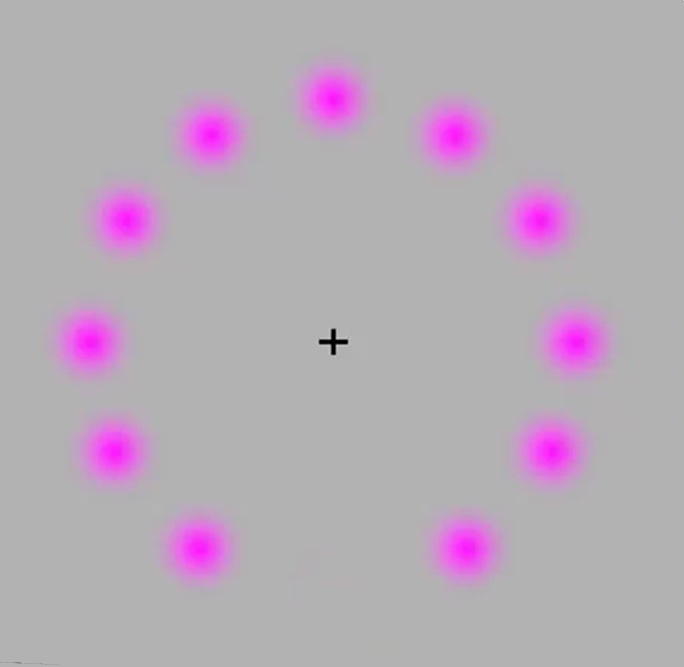 1. Încercați să urmăriți cercul roz și „veți vedea totul roz”- adică dispare punctul verde care se mișcă;
