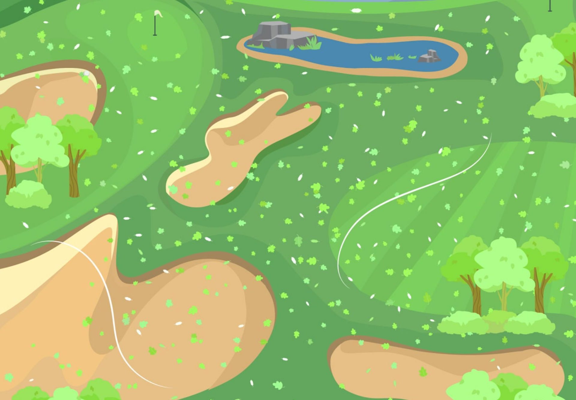 O astfel de iluzie optică te provoacă să găsești o micuță minge de golf pe un teren de joc plin de puncte albe și de forme de relief.