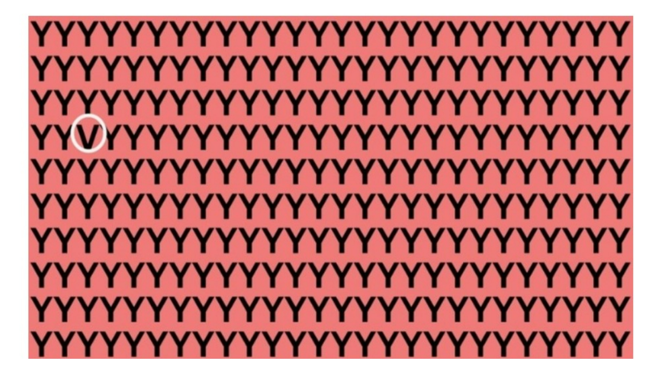 În imagina de mai jos trebuie să găsești litera V printre literele Y. Poți să găsești în doar 15 secunde litera strecurată? Trebuie să te înarmezi cu multă răbdare și să nu te grăbești. Timpul tău începe chiar acum: