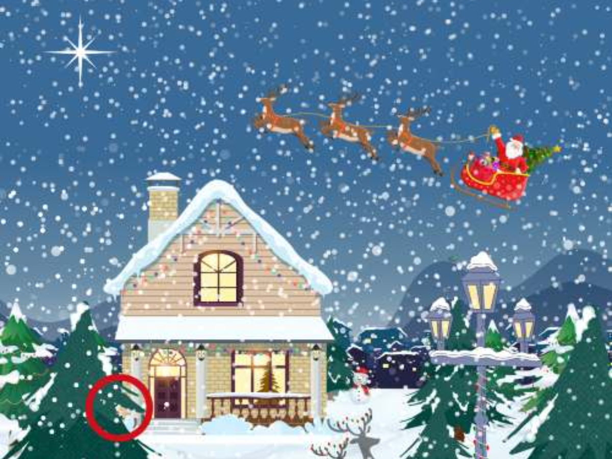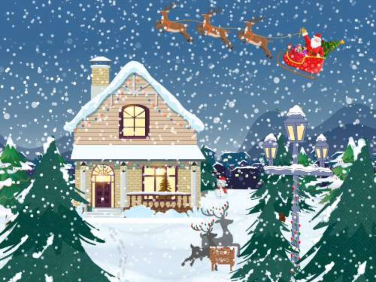 Pentru astăzi îți propunem o iluzie optică cu tematică de Crăciun. În imagine este prezentat un peisaj de iarnă: o căsuță peste care ninge, sania trasă de reni, în care se află Moș Crăciun, dar și stratul de zăpadă care s-a așezat peste tot.