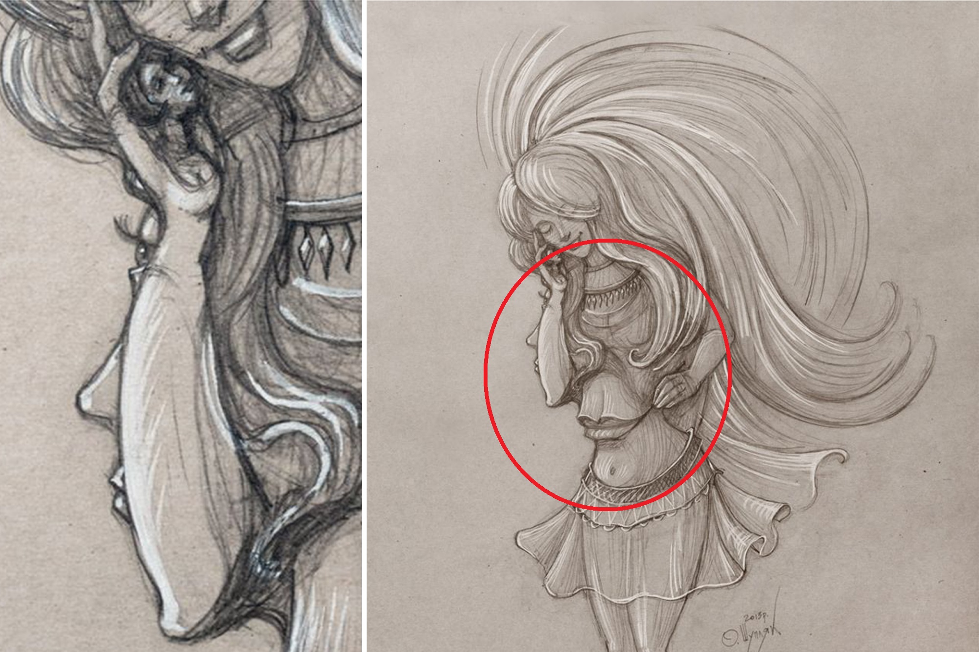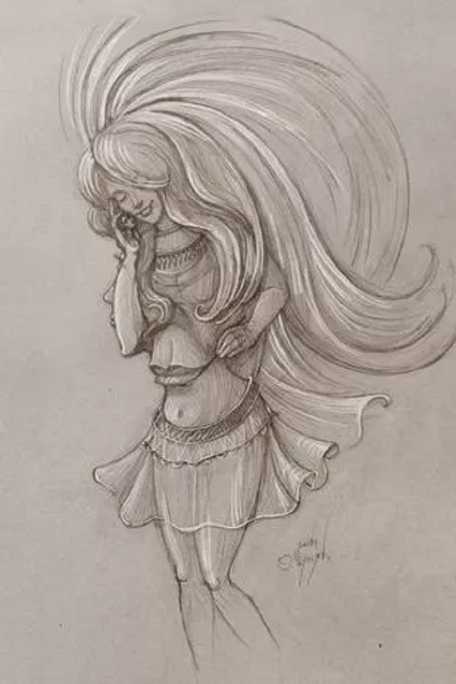 Schița a fost creată de artistul ucrainean Oleg Shupliak și arată o femeie cu păr lung și curgător- dar puteți vedea celelalte figuri din ea?