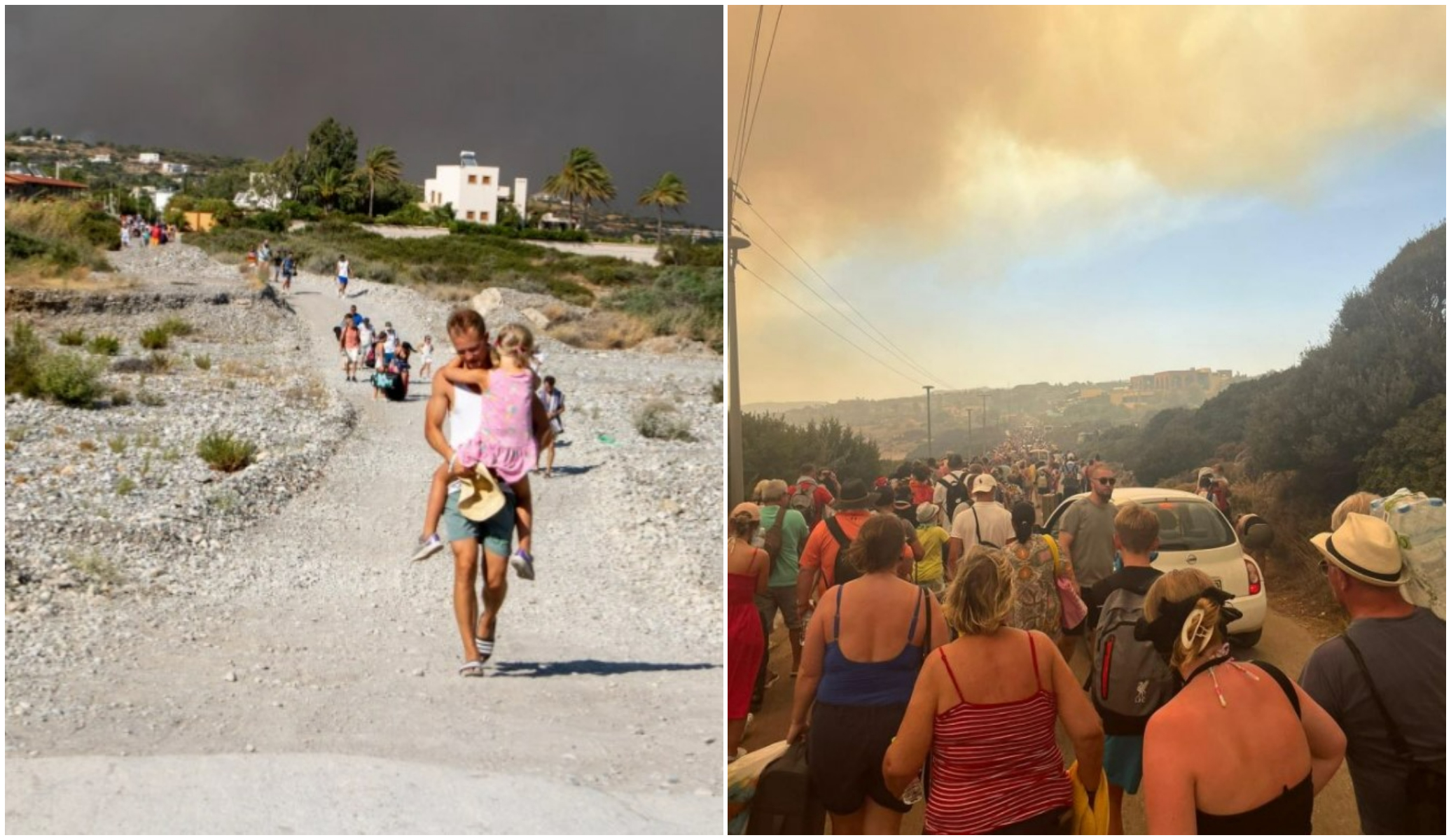 Autoritățile grecești au declarat că incendiul "se deplasează spre sud-est pe un front larg", iar bărci private sunt pregătite pentru a prelua persoanele evacuate. În Rodos, peste 16.000 de persoane au fost evacuate pe uscat și 3.000 pe mare din 12 sate și mai multe hoteluri- mulți dintre ei britanici. Scenele șocante au arătat coloane de oameni care își cărau bagajele și copiii pe drumuri de pământ, în timp ce încercau să găsească siguranță.