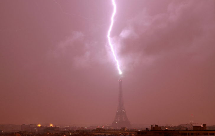 Bertrand Kulik a reusit sa fotografieze celebrul turn Eiffel in timp ce a fost lovit de fulger. Fotografia a fost facuta din arondismentul al XV-lea la ora locala 02:07. Furtunile din ultima perioada din Franta au dus si la realizarea acestei imagini superbe.