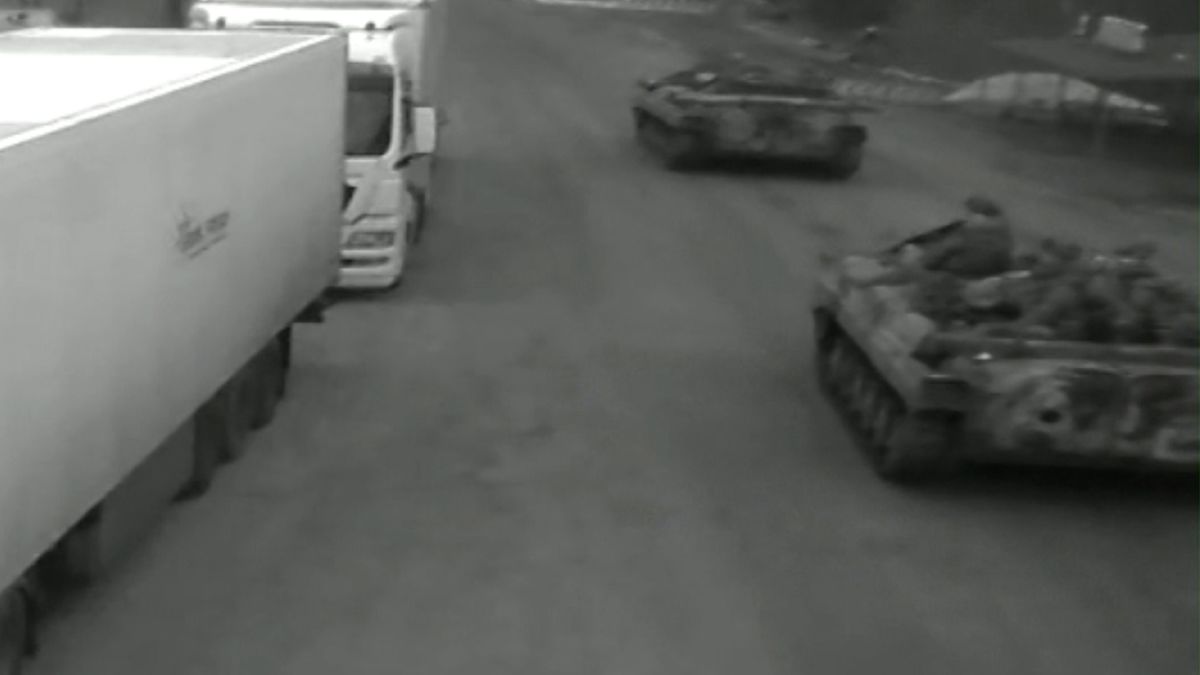 CNN a surprins momentul în care trupe şi o coloană de vehicule militare intrau în Ucraina printr-un punct de frontieră cu Belarus. Imaginile erau de la punctul de frontieră Senkivka, Ucraina- Veselovka, Belarus.
