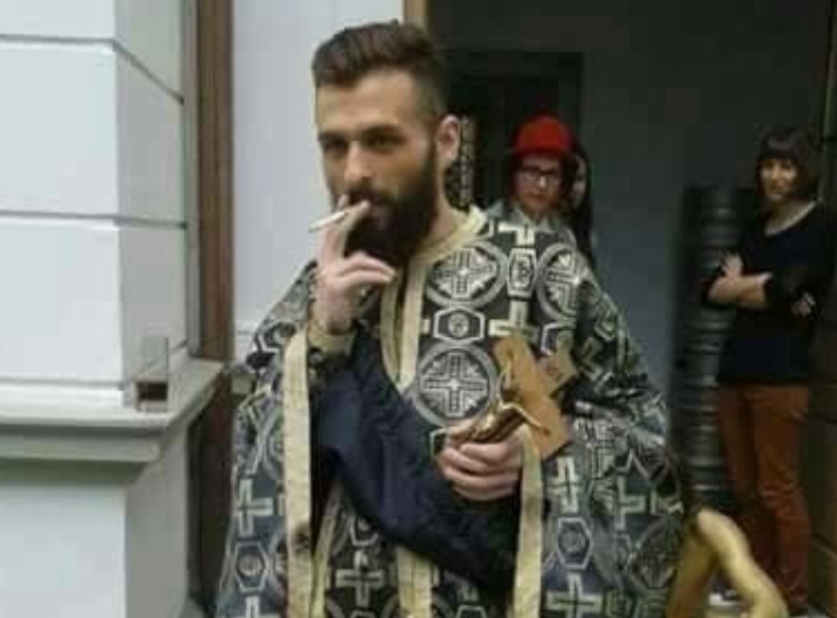 Imaginea care a împărţit internetul în două! Un tânăr îmbrăcat în haine preoţeşti în timp ce trăgea din ţigară a devenit viral pe reţelele de socializare