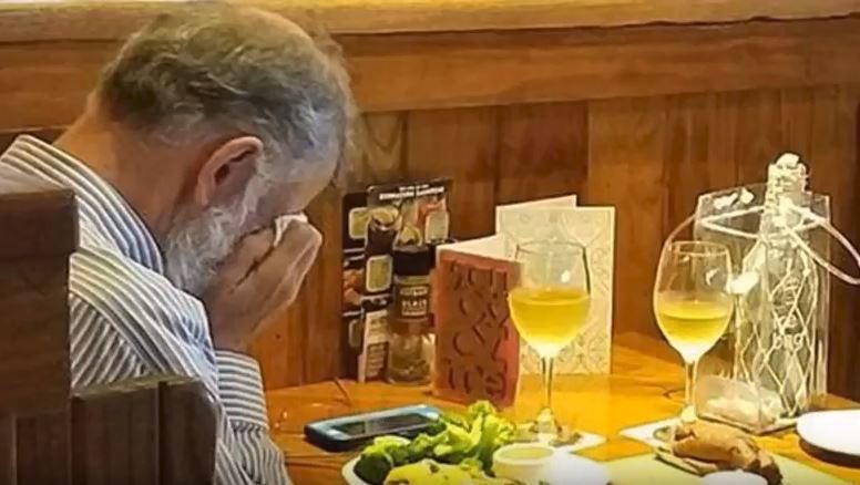 Imaginile senzationale au fost surprinse de o femeie. Un barbat in varsta s-a asezat la masa, in restaurant, si a inceput sa planga. Pe masa se afla cenusa sotiei sale!