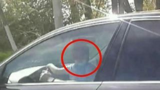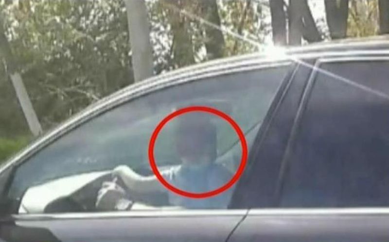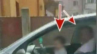 O frana brusca i-ar putea nenoroci pe amandoi! Micutul, care nu pare sa aiba mai mult de doi ani, nu e pe bancheta din spate, intr-un scaun special, ci in bratele tatalui, la volan! Socat de-atata incostienta, un martor ii filmeaza!