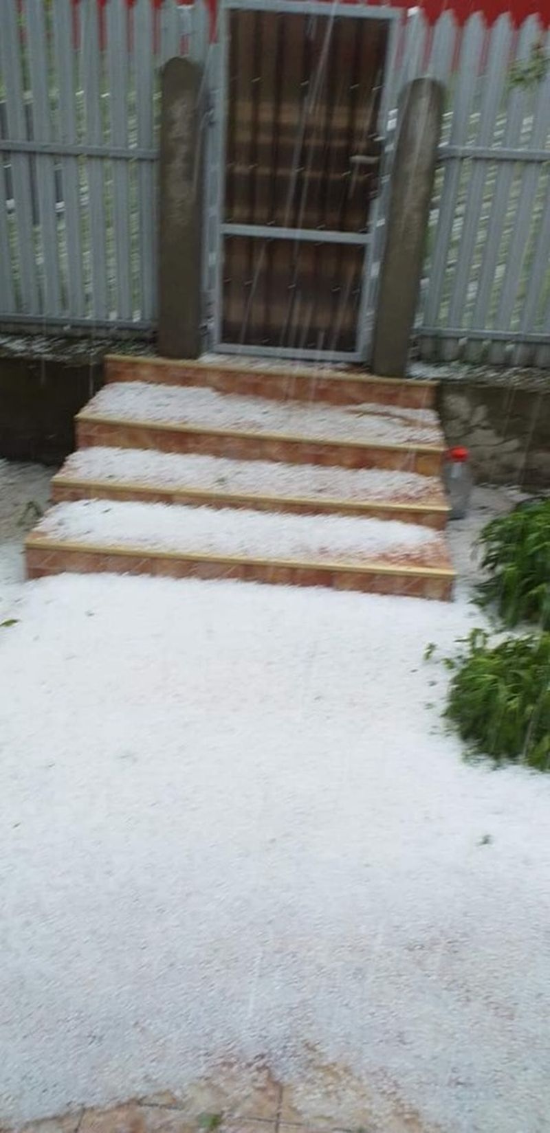 În câteva imagini postate pe pagina Meteoplus, trimise de Elena Țaga și de Andreea Denisa, se observă cum grindina căzută astăzi în jurul orei 14,30 a acoperit solul cu un covor alb, de parcă ar veni iarna, și nu vara, care va sosi măcar calendaristic în 10 zile.