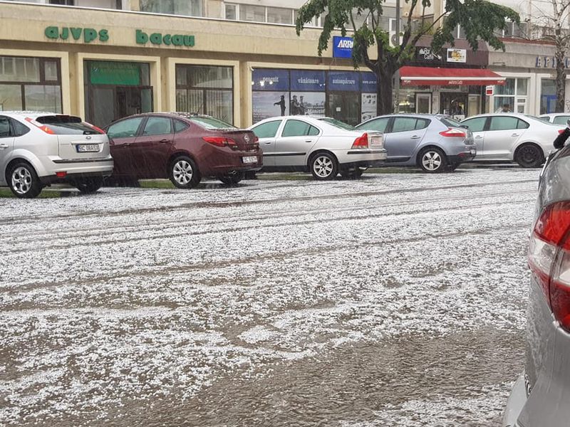 Vremea continuă să fie capricioasă în România, așa cum dovedesc și imaginile realizate astăzi în orașul Bacău. După tornade, furtuni și ploi torențiale, grindina a lovit din nou mai multe localități din Moldova, foarte afectat fiind orașul Bacău.