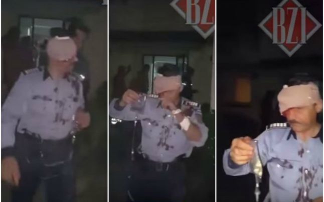 Imaginile il surprind de omul legii plin de sange, dupa ce una dintre urechi i-a fost taiata in timp ce intervenea pentru a calma un scandal izbucnit intr-o familie din zona Ciric, cartier situat la marginea orasului.