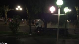Vanuit een andere hoek is te zien hoe de vrachtwagen met hoge snelheid door de mensenmassa in #Nice rijdt. https://t.co/ofvdrvojIL