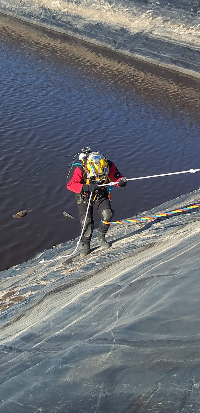 Acţiunea de căutare a băiețelului are loc în zona unui iaz de decantare a dejecţiilor animale. Zece pompieri militari şi şapte scafandri acționează la fața locului.