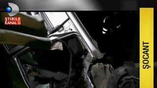 Impactul a fost atat de puternic incat cei doi pasageri din fata au fost aruncati prin parbriz si au ramas prinsi sub stalpul de electritate peste care se afla automobilul.