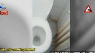 Numai mediu sptic nu se pot numi aceste grupuri sanitare. Nici cea mai murdara toaleta publica nu arata asa. In loc de curatenie si igiena, usile sunt pline de mizerii.