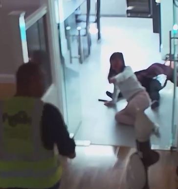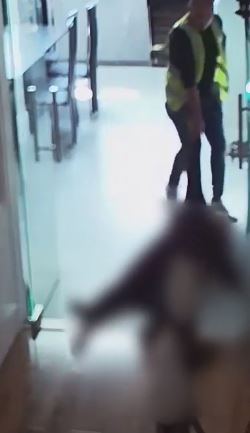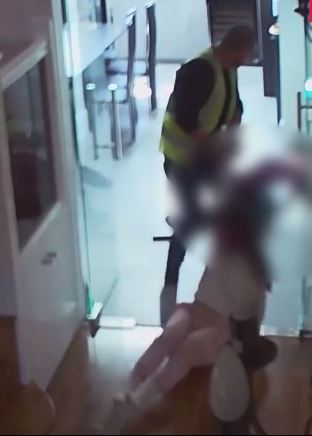 Pe imaginile de supraveghere se poate observa cum agresorul le târâie pe cele două femei inconştiente dintr-o cameră în alta.