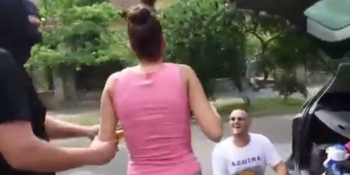 Imagini de senzatie! A fost ceruta in casatorie cu trupele ANTITERO: "Culcat! Sunteti retinuta!"Un tanar îndragostit a pus în practica o idee de cerere în casatorie...de infarct. Vlad Lungu a achizitionat cateva costume similare celor purtate de trupele ANTITERO, si-a deghizat prietenii în ele si i-a pus sa simuleze o actiune de retinere în urma savarsirii unor fapte grave în timp ce se afla în masina cu iubita sa.Dupa ce a fost scoasa cu forta din autovehicul si culcata la pamant, iubita tanarului a fost dusa spre porbagaj pentru a le “arata mascatilor” bagajele. Surpriza! Aici o astepta un inel.Imaginile au fost postate pe Facebook chiar de catre viitorul mire, Vlad Lungu. Un tanar îndragostit a pus în practica o idee de cerere în casatorie...de infarct.
